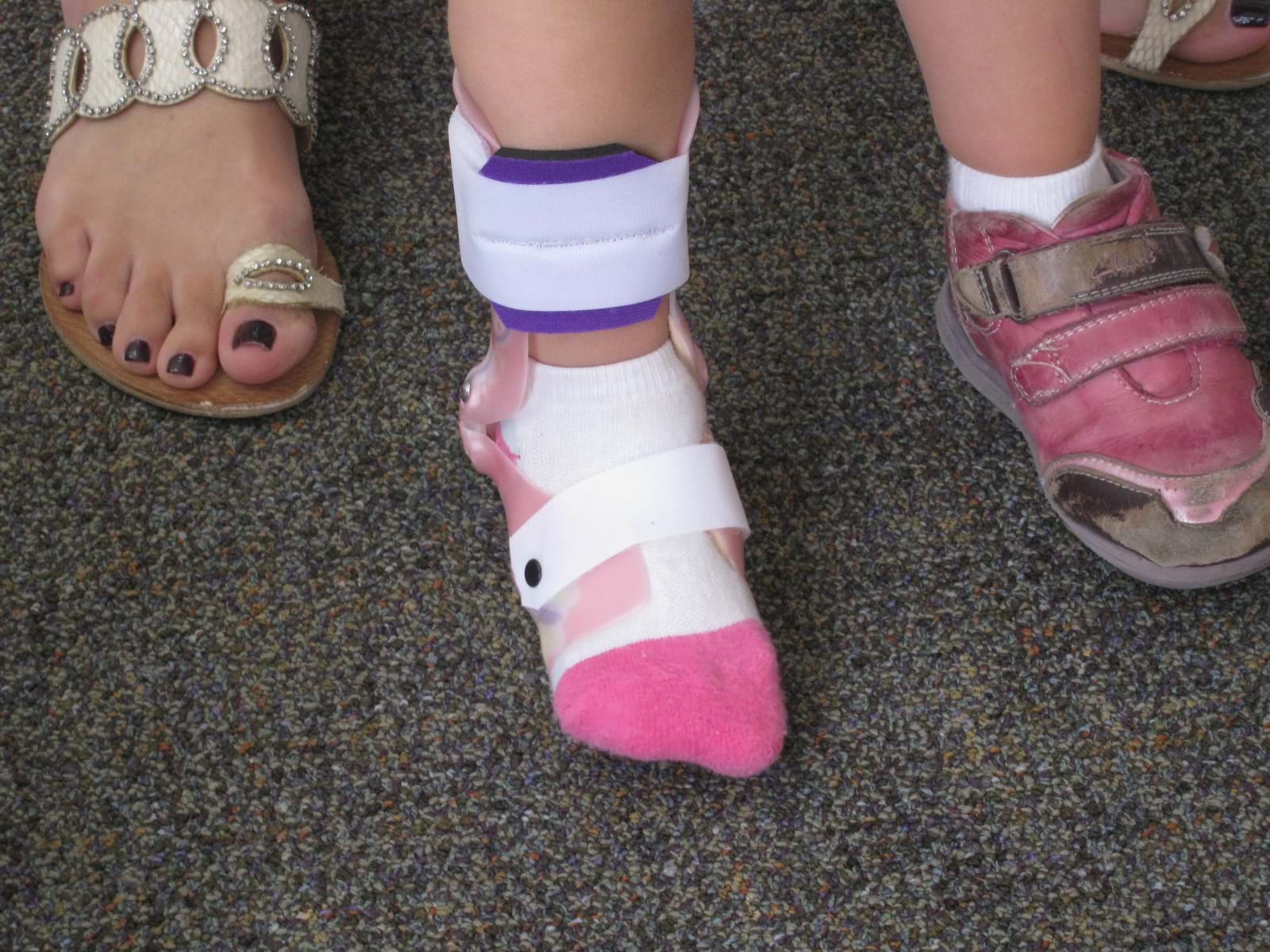 After stepping and walking is learned, only foot orthoses may be needed to improve balance and endurance. It is our goal to reduce the level of support down to nothing, so that the child eventually has all the strength to walk and run unsupported.